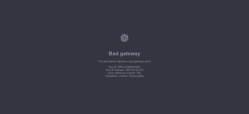 O ChatGPT sofreu uma queda global na manhã de hoje (23). Em questão de minutos, milhares de usuários em todo o mundo começaram a relatar falhas sistemáticas, todas acompanhadas pela mensagem de “Bad gateway: O servidor da Web relatou um erro de gateway ruim”.