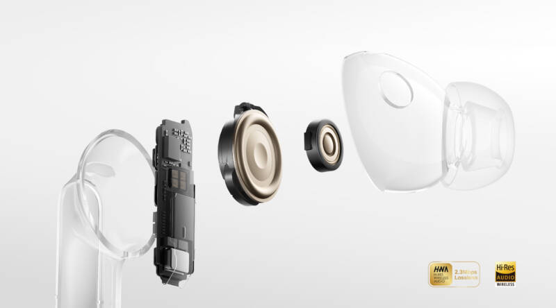 O sistema de cancelamento de ruído ativo (ANC) recebeu uma reformulação arquitetônica profunda, sendo batizado de “Dual-Engine AI Noise Cancellation”. Pela primeira vez, dois alto-falantes (um para graves e outro para agudos) trabalham em conjunto para gerar ondas sonoras antifase, combatendo ruídos de diferentes espectros de frequência simultaneamente.