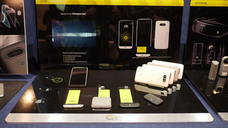 A LG também quis sua fatia do mercado modular, lançando em 2016 os LG Friends junto com o controverso LG G5. Diferente dos Moto Mods magnéticos, o G5 tinha uma gaveta deslizante na parte inferior que permitia remover a bateria e inserir módulos especiais.