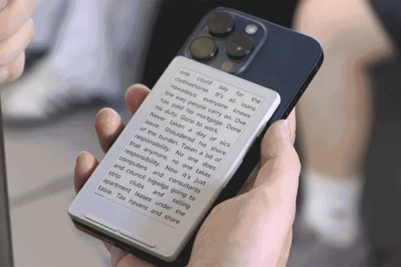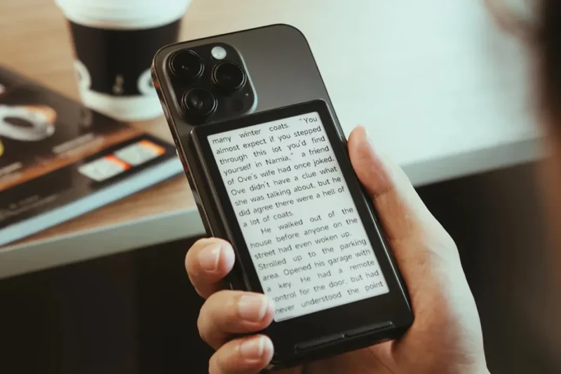 O design permite que os usuários alternem rapidamente entre as distrações das redes sociais e a imersão em um livro, transformando a traseira de um iPhone em uma tela de leitura sem complicações.